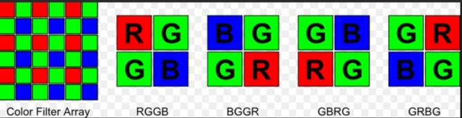 Le fichier correspondant à la lecture d'une image est une suite de trames (Matrice de Bayer) qui selon le type de capteur est RGGB, ou BGGR ou GBRG ou GRBG.